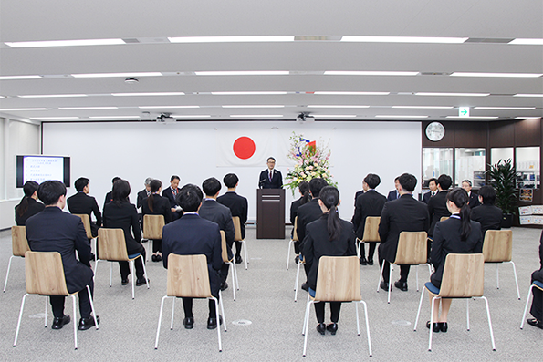 社長訓示では「常に社会やお客さまの目線を持つこと」「能動的に挑戦し、自己を高め続けること」の2点をお願いするとともに、完璧でなくても小さくてもよいので、まず一歩を踏み出すこと、その一歩一歩の積み重ねが自身の成長につながるというメッセージが送られました。